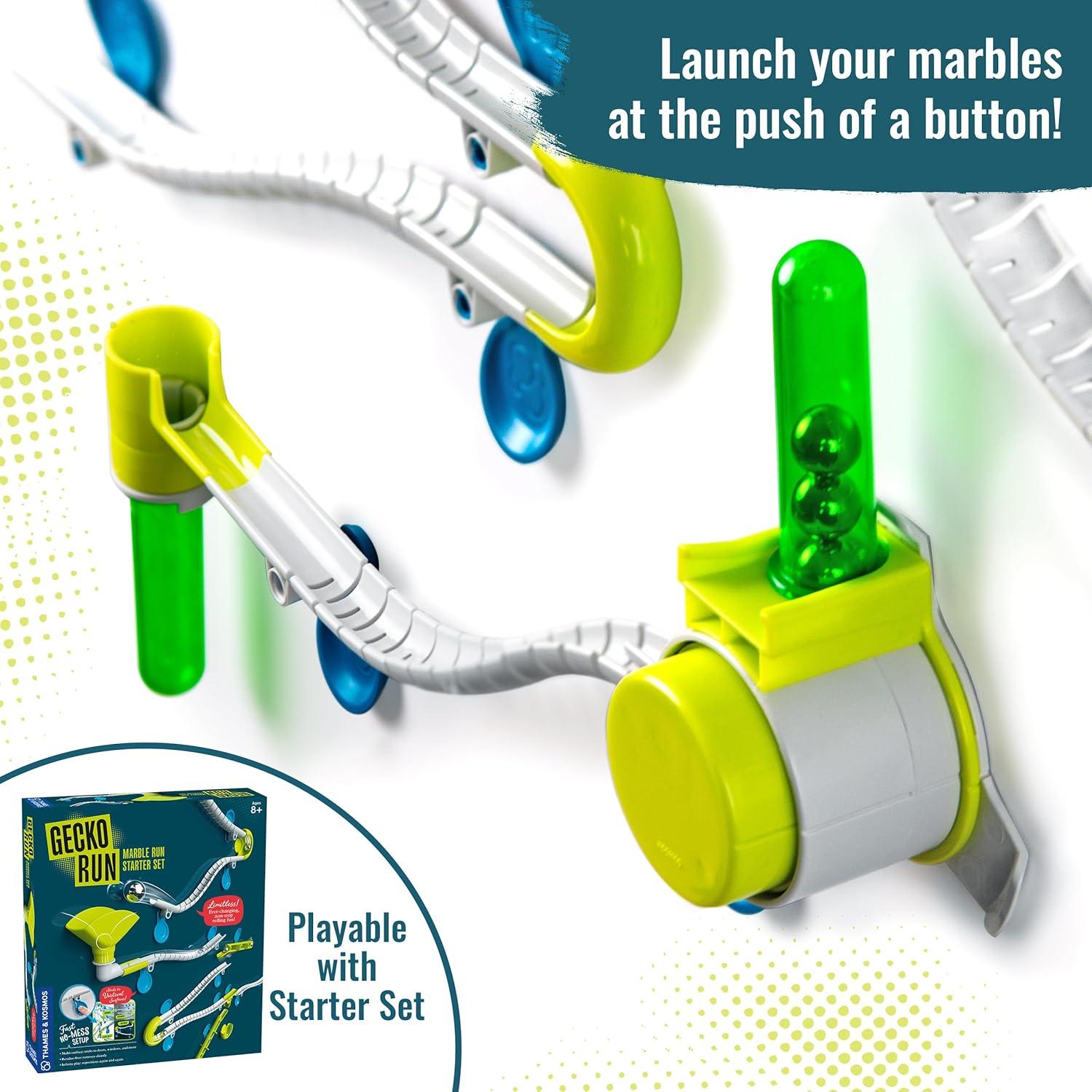 Gecko Run Marble Run Rapid-Fire Launcher Expansion Pack | Thames & Kosmos, Extra Stunt for Vertical Marble Run Starter Set; Fast, No-Mess Setup, Residue-Free Nano-Adhesive Pads, Hours of Creative Play