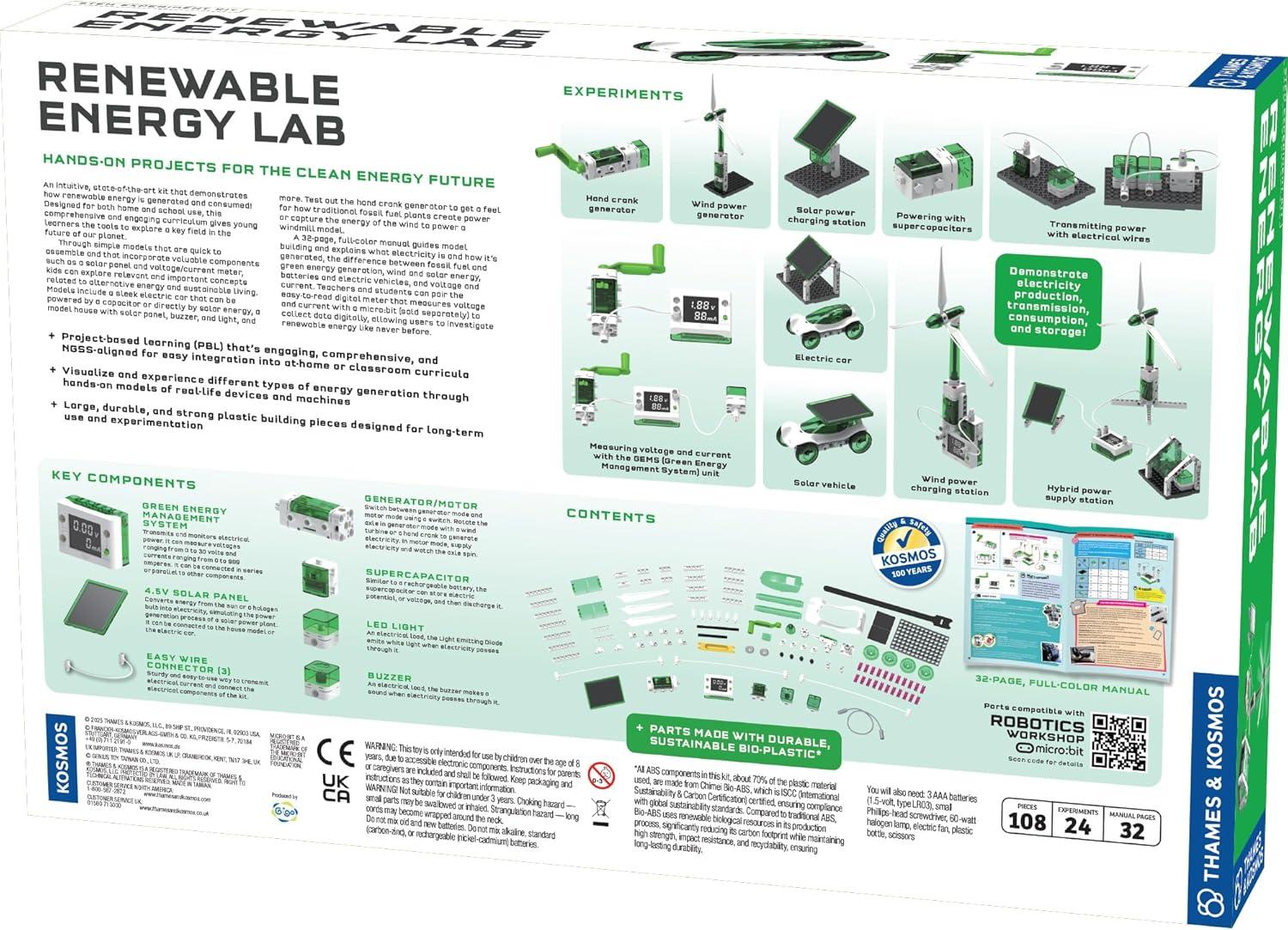 Thames & Kosmos Renewable Energy Lab STEM Experiment Kit, Hands-on Projects & Curriculum for Home & School Use, NGSS-Aligned, Build Models to Explore Clean Energy Generation & Consumption, Ages 8-18+