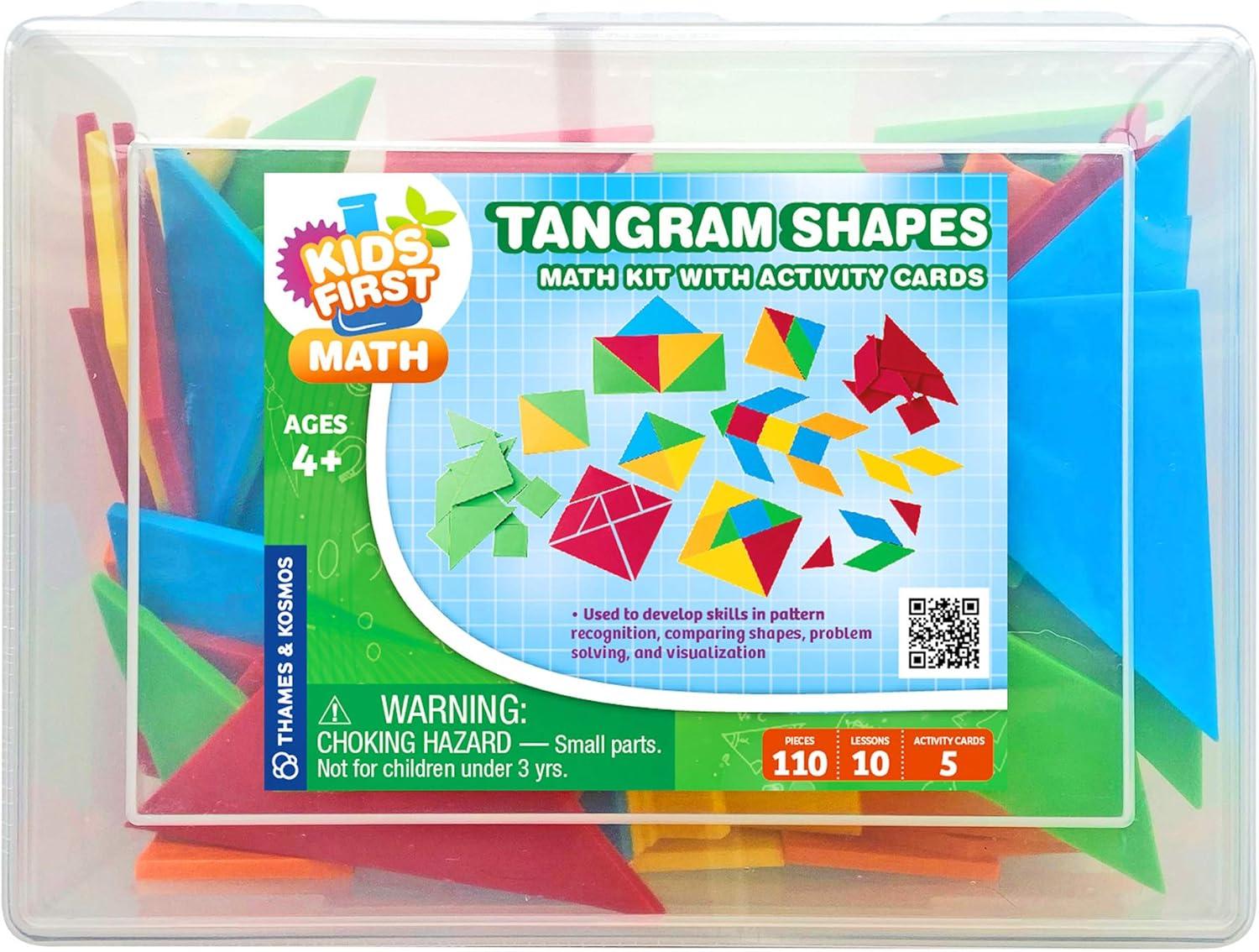 Kids First Math: Tangram Shapes Math Kit w/Activity Cards | 105 Colorful Plastic Geometric Shapes | Explore Geometry, Shapes, Matching | Visual Hands-on Math for At-Home or Classroom Learning, Ages 4+