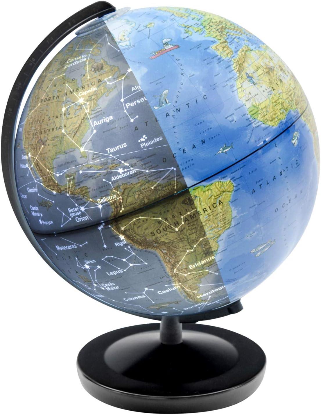 Thames & Kosmos Day & Night Globe – Handcrafted, Acrylic – Made in Germany by Columbus Globes – 10 inch, Illuminated LED Light-up with Night Sky Constellation Map