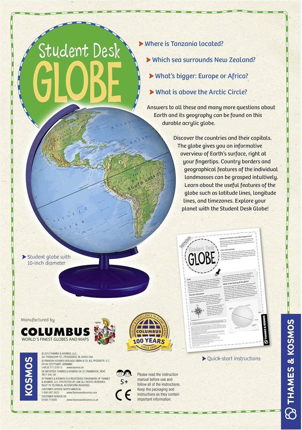 Thames & Kosmos Student Desk Globe, 10″ Diameter Acrylic Globe with Geopolitical Boundaries, Made in Germany by Columbus, World’s Finest Globes & Maps