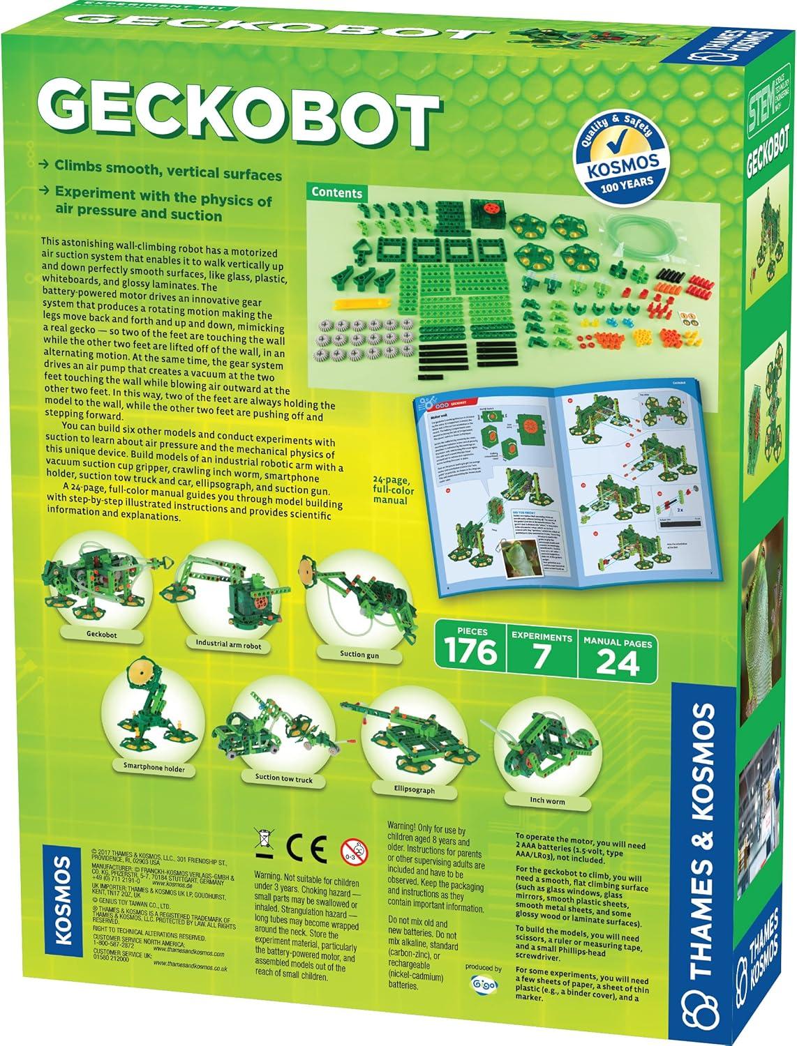 - Get a free gift with your purchase of Thames & Kosmos Geckobot STEM Experiment Kit | Build a Wall-Climbing Robot & 6 Other Mechanical Creations | Explore The Physics of Air Pressure & Suction | Difficulty Level: Advanced(Geckobot Updated Packaging). Limited quantities available!
