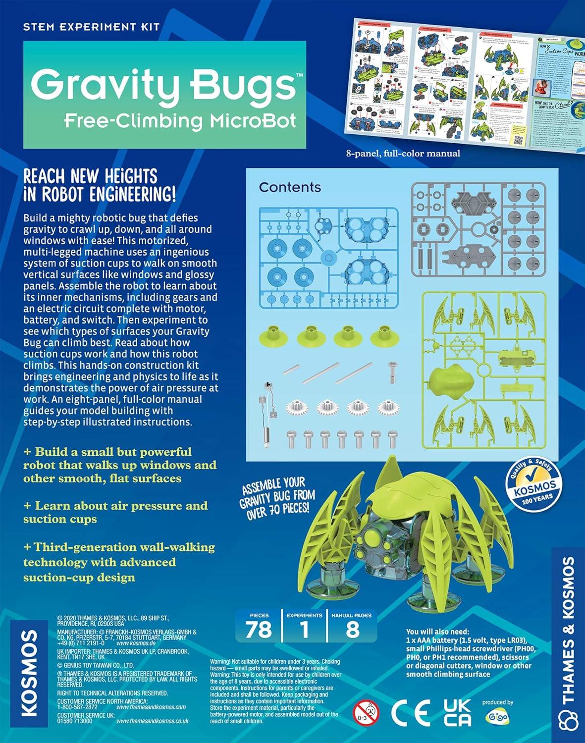 Thames & Kosmos Gravity Bugs Free-Climbing MicroBot | Build a Robotic Wall-Crawling Bug | Explore STEM Lessons in Air Pressure, Suction | Hands-on Physics & Engineering Construction Kit, Blue