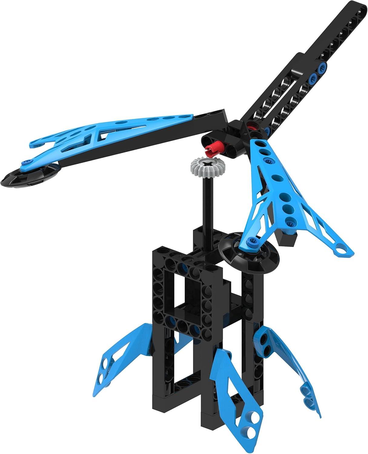 5-in-1 engineering kit: build five, fun functional models including a desert racer, motorcycle and launcher, catapult, wind mobile, and balancing dragonfly.