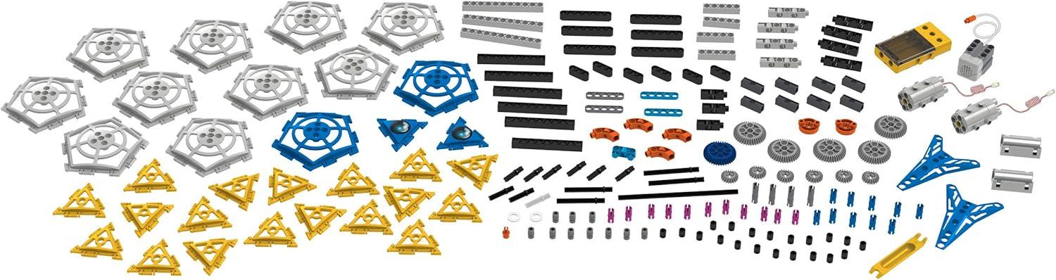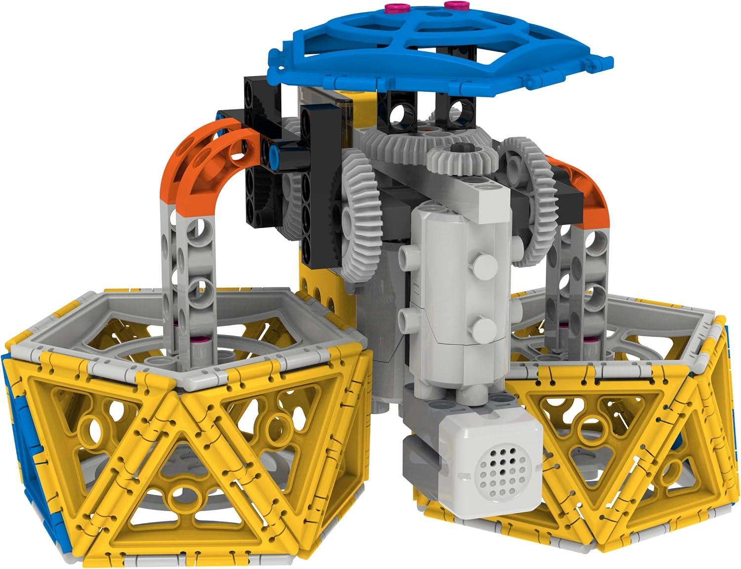 Build an awesome, nine-inch-diameter, rolling robotic sphere and six other robot models. Drive your robot using the remote-control interface in the Super Sphere app, available for tablets and smartphones, or write programs using the easy, visual programming language in the app. The onboard sound sensor lets you program your robots to perform specific sequences of commands in response to the number of claps (or other loud sounds) that it detects. Robotics is a vast and thrilling interdisciplinary field involving physics, engineering, and computer science. This kit gives kids a simple, fun, and customizable introduction to robotics that lets them build seven motorized machines controlled by programs and a sound sensor. Each robot model moves in a unique and interesting way, demonstrating how the same mechanical parts can come together to yield many different results. Construct the Super Sphere robot, which has two motors and a sound sensor mounted inside a hollow, spherical shell made of 32 interlocking pieces. Learn about the inner mechanics and the fascinating physics principles that enable the Super Sphere to drive forward, backward, and turn left and right. Then, build a robot with two jumbo-sized wheels made from the same pieces as the Super Sphere’s outer shell. Assemble the Bigfoot Bot and experiment with a robot that crawls around on two humongous feet. Adventure into the animal kingdom by building robots that resemble and mimic the movements of a penguin and a horseshoe crab. Program a funny dancing robot that can shake, wiggle, and twirl on command. Make your own robotic game in which you try to toss shapes into a hole in a sphere as it moves around. Each robot comes with a preset program which you can run immediately after building it. After learning how the technology works, you can build and program your own robots using the kit’s 182 building pieces. A full-color, 60-page, step-by-step illustrated manual helps you assemble all of the models and includes information about robotics in the real world. In addition to the robotics experiments, you can conduct hands-on experiments in three-dimensional geometry using the triangular and pentagonal shell pieces. The free app connects to the robot models via a wireless Bluetooth connection. In the programming mode of the app, the visual programming language allows you to command the robots’ motors to move for different lengths of time, at different power levels, and in different directions.