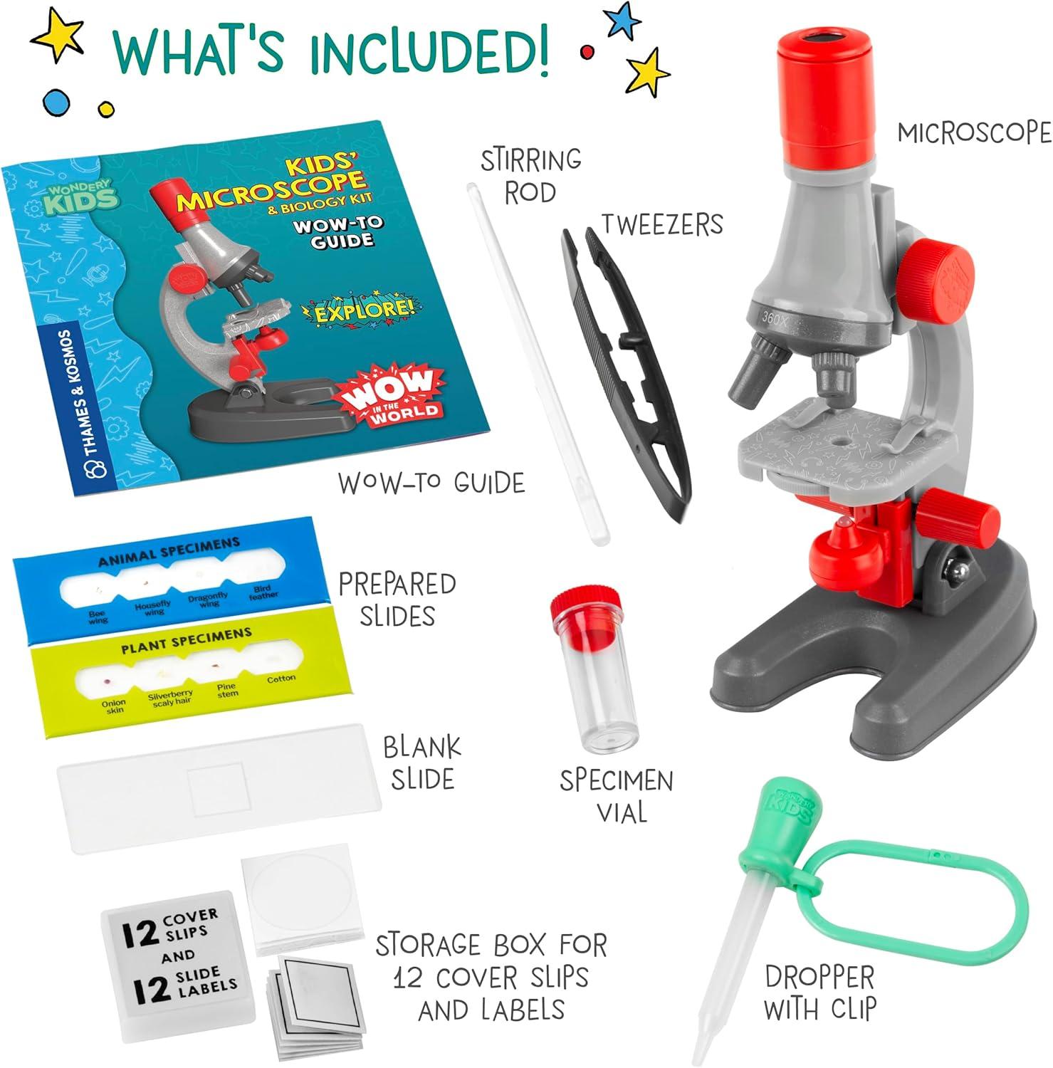 Wow in The World Kids’ Microscope & Biology Kit, Up to 720x Magnification, LED Illumination, Prepared & Blank Slides, Companion Audio Content, Beginner Science Gift for Ages 6+ by Thames & Kosmos